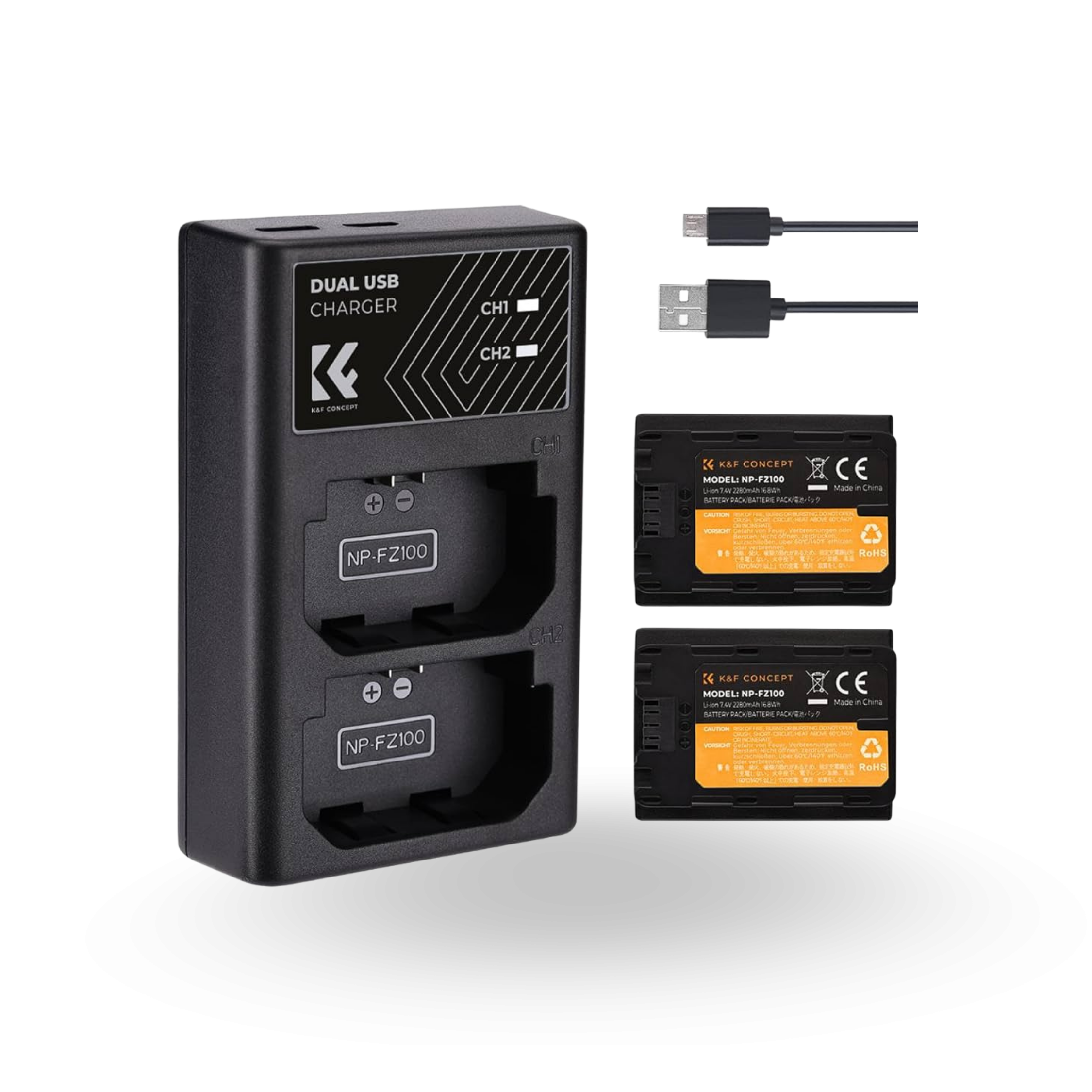 K&F Sony NP-FZ100 Battery Kit – 2 Batteries and Dual Charger | KF28.0016
