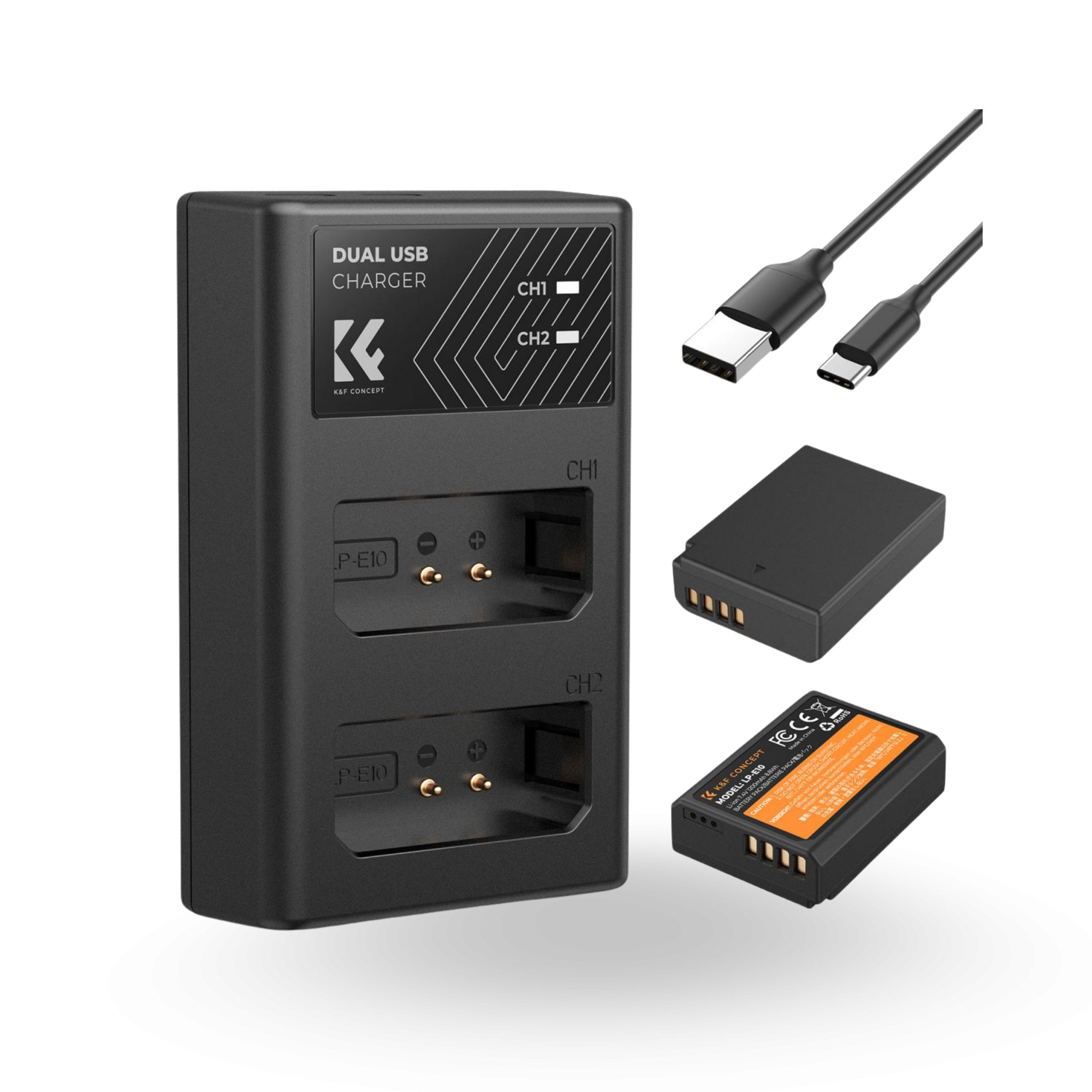 LP-E10 Battery and Charger Set with Dual Slot Charger for Canon EOS 1100D, 1300D, 1500D, 1200D, X50
