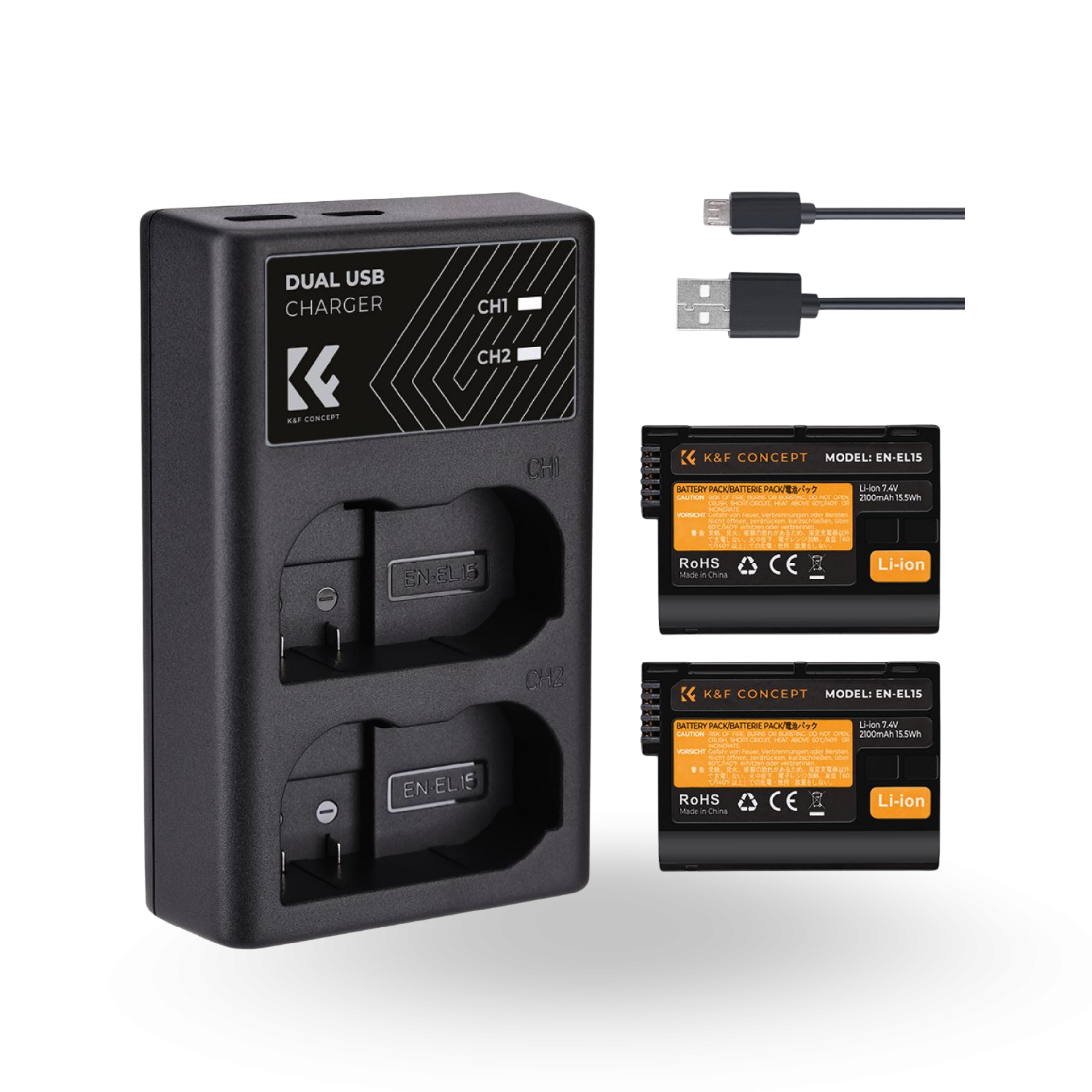 K&F Nikon EN-EL15 Battery Kit – 2 Batteries and Dual Charger | KF28.0012
