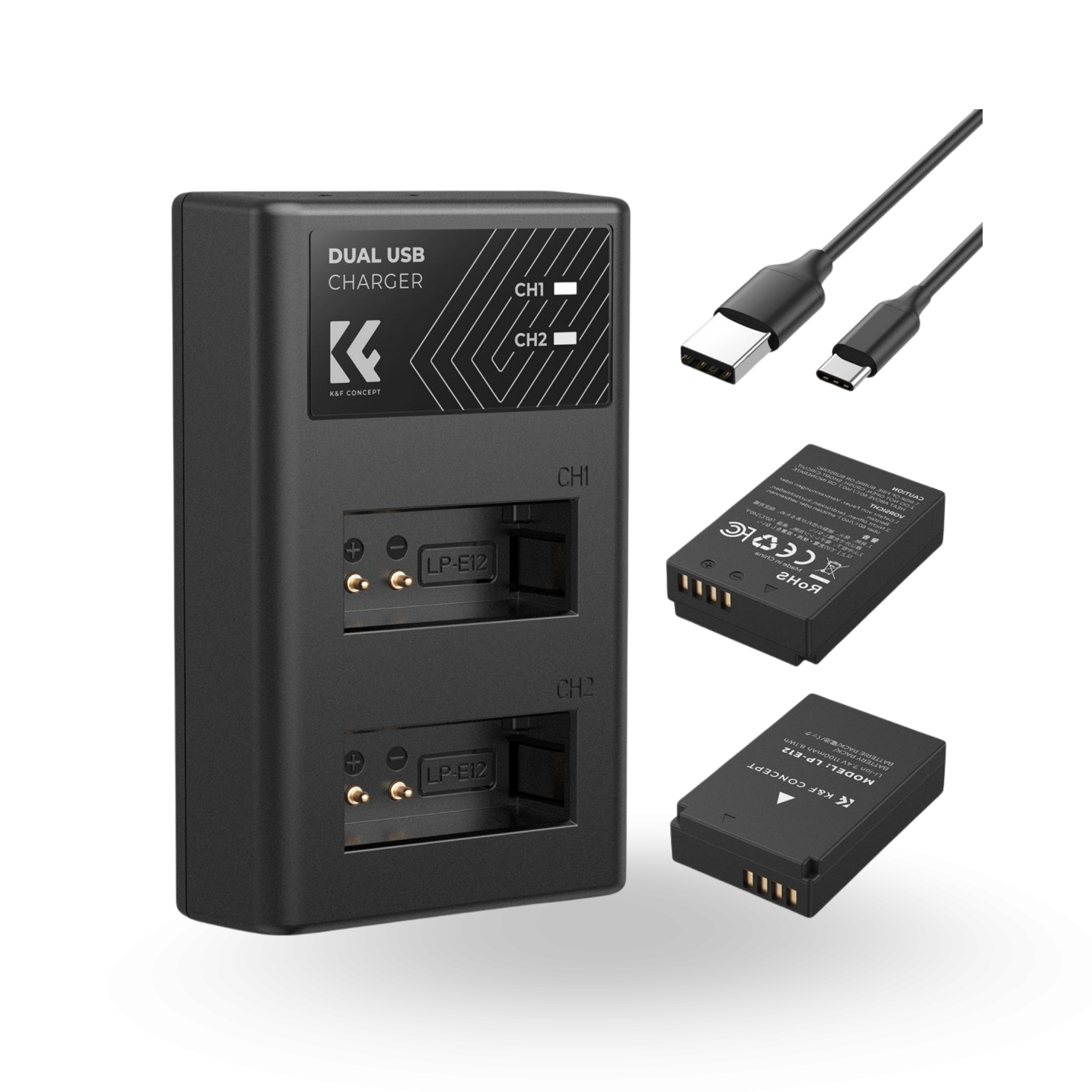 LP-E12 Battery and Charger Set with Dual Slot Charger for Canon