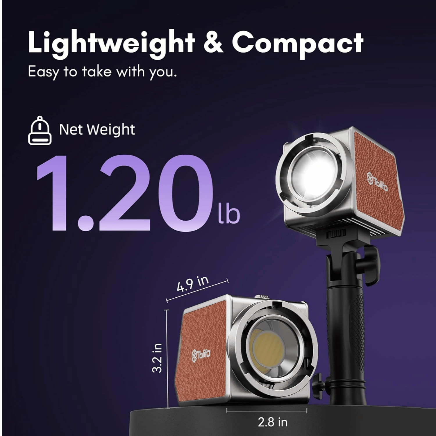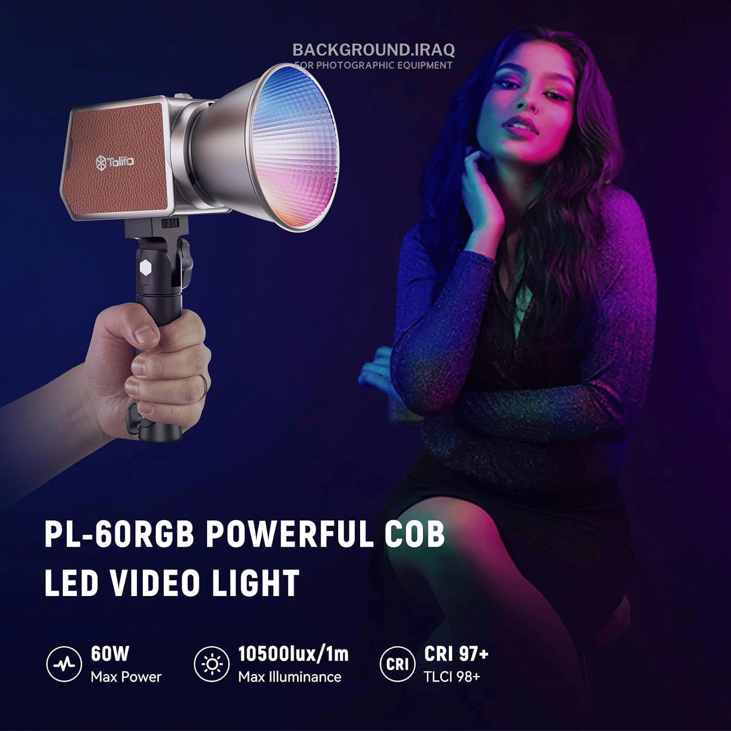 هي إضاءة COB محمولة بقدرة 60 واط، تجمع بين RGB الكامل وBi-Color داخل تصميم صغير بحجم راحة اليد، مما يجعلها خيار ممتاز للتصوير الخارجي، اليوتيوب، البث المباشر، وتصوير المنتجات. القدرة: 60W COB LED نظام الألوان: RGB كامل + Bi-Color درجة حرارة اللون: 2700K – 6500K التحكم بالسطوع: من 0% إلى 100% التحكم بالألوان: Hue من 0° إلى 360° + Saturation من 0% إلى 100% دقة الألوان: CRI 97+ TLCI 98+ شدة الإضاءة: تصل إلى 10,500 Lux تقريبًا عدد المؤثرات: 20 تأثير ضوئي جاهز بطارية داخلية: 4500mAh / 49.5Wh مدة التشغيل: حوالي 72 دقيقة بالوضع العادي حوالي 40 دقيقة بأقصى سطوع الشحن: USB-C مع دعم PD + منفذ DC يدعم العمل أثناء الشحن الوزن: حوالي 632 غرام الماونت: Mini Bowens Mount يدعم التحكم عبر تطبيق Linkline عن طريق البلوتوث 🎛️ المميزات الأساسية RGB كامل مع Bi-Color في جهاز واحد بطارية داخلية مناسبة للتصوير الخارجي حجم صغير وسهل الحمل يدعم Mini Bowens للسوفت بوكس والملحقات شاشة LCD للتحكم السريع يمكن تشغيله وشحنه بنفس الوقت عن طريق USB-C أو باور بانك ✅ الخلاصة إذا تريد إضاءة صغيرة لكن أقوى من PL-40RGB، فـ Tolifo PL-60RGB Portable Multi Color Palm LED يعتبر خيار ممتاز لأنه يجمع بين RGB، بطارية داخلية، وقوة 60W مع حجم صغير وسهل التنقل.