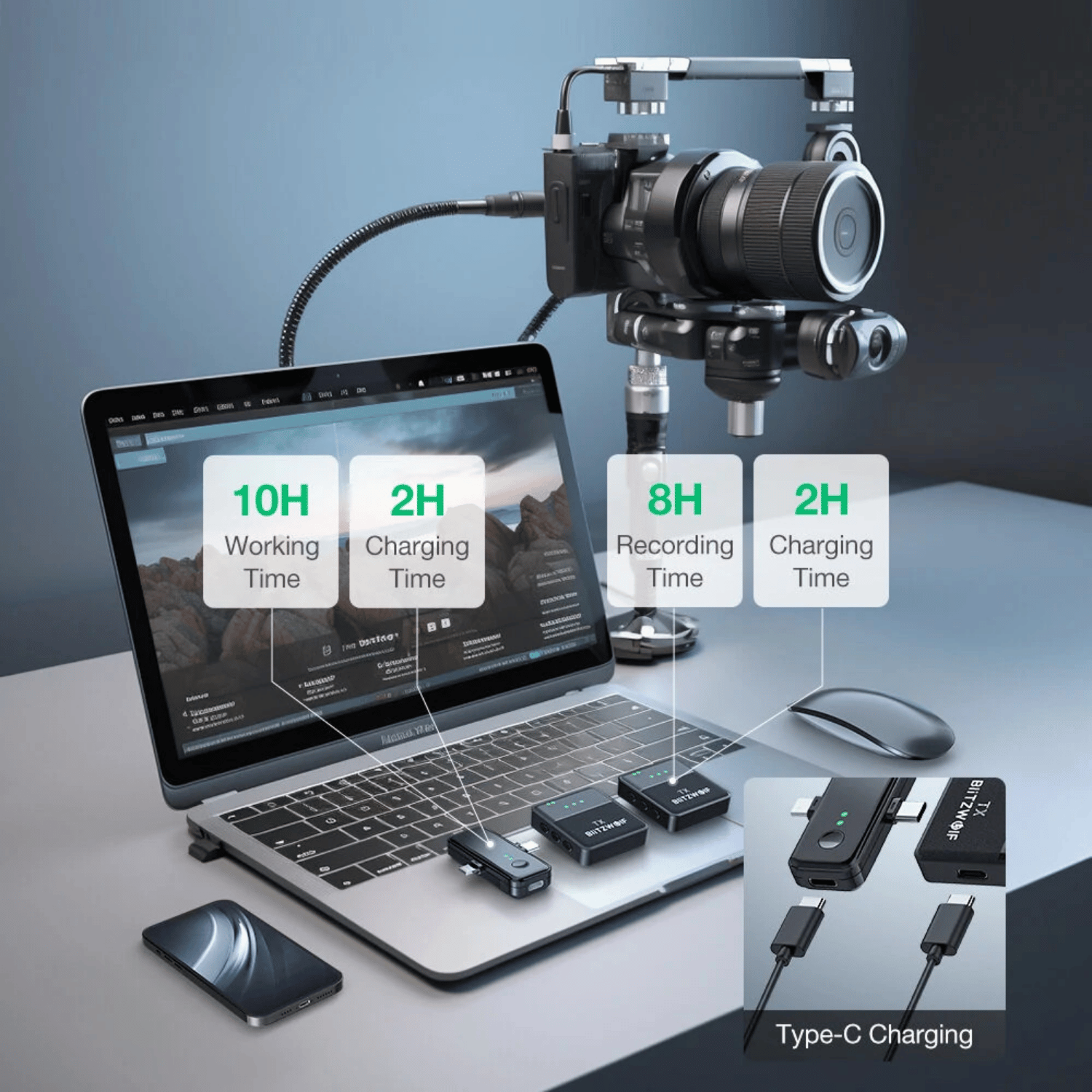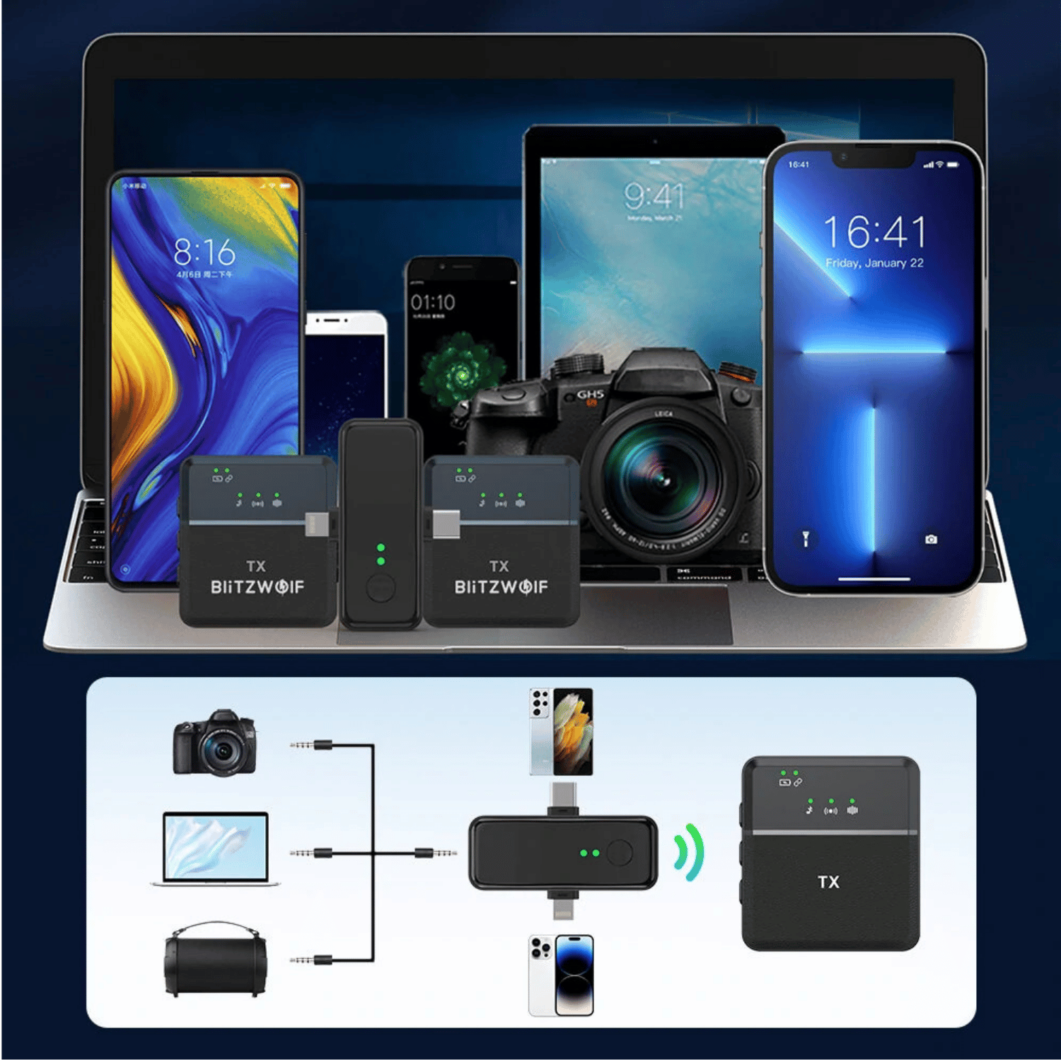 هو مايك لاسلكي (Lavalier) مخصص لصناع المحتوى، يوفر صوت واضح مع تقليل ضوضاء وحرية حركة أثناء التصوير. ⭐ أهم المميزات: 🎤 مايك لاقط (Clip-on) صغير وخفيف يثبت بسهولة على الملابس 🔇 تقليل ضوضاء (Noise Reduction) لصوت أنقى حتى في الأماكن المزدحمة 🔊 التقاط صوت 360° (Omnidirectional) لتسجيل شامل وواضح 📶 مدى لاسلكي حتى 20 متر مناسب للتصوير والحركة ⚡ Plug & Play يعمل مباشرة بدون تطبيق أو إعدادات 🎙 يدعم تسجيل شخصين (2 مايك + ريسيفر واحد) 🔋 بطارية 6–10 ساعات استخدام متواصل 🔌 متوافق مع (Type-C / Lightning / 3.5mm) لجميع الأجهزة ⚙️ المواصفات: الاتصال: 2.4GHz Wireless زمن التأخير: منخفض (Low Latency) الوزن: خفيف جدًا (~20–21g للمايك) الاستخدام: موبايل / كاميرا / لابتوب