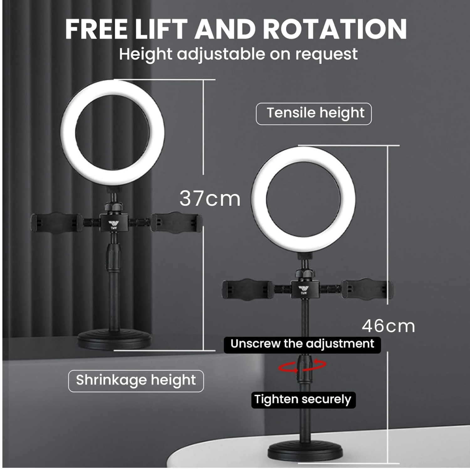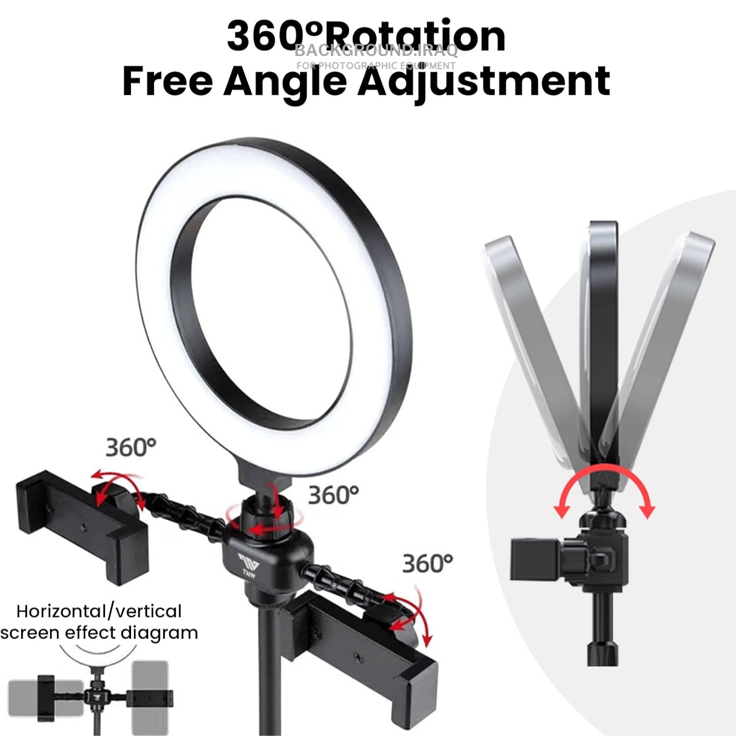 Ring Light Stand LED Beauty Fill Light هو حل متكامل للتصوير والبث المباشر، يوفر إضاءة ناعمة مع إمكانية تثبيت موبايلين بنفس الوقت. ⭐ أهم المميزات: 💡 إضاءة دائرية ناعمة (Ring Light) تقلل الظلال وتعطي مظهر احترافي 📱 حاملين موبايل (Dual Phone Holder) للتصوير والبث بنفس الوقت 🎨 3 أوضاع إضاءة (أبيض / دافئ / طبيعي) 🎚️ تعديل شدة الإضاءة حسب الحاجة 📏 ستاند قابل للتعديل بالارتفاع 🔄 مرونة في الحركة (تدوير 360°) ⚡ تشغيل عبر USB (باور بنك / شاحن)