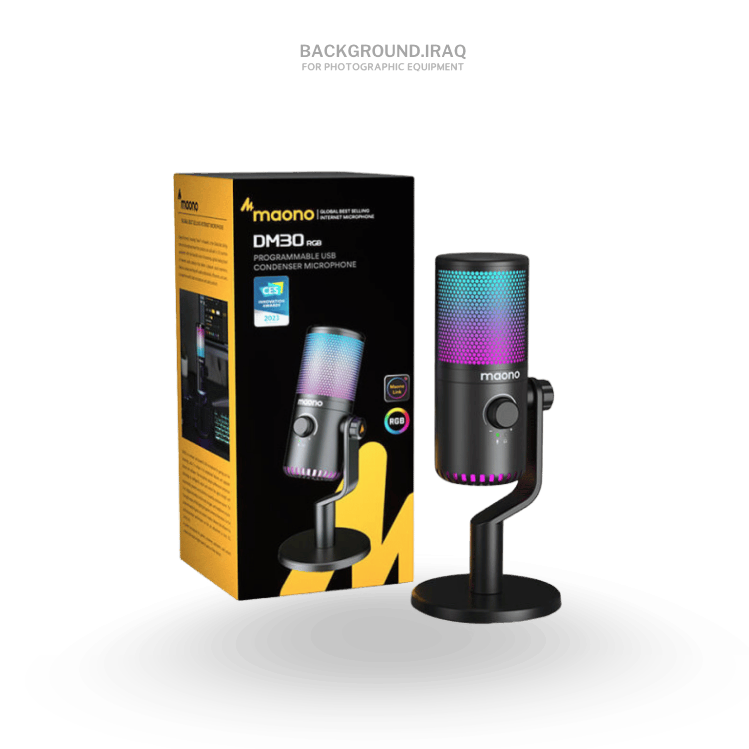 هو مايك Condenser مخصص للألعاب، البث المباشر، البودكاست، وصناعة المحتوى. يعمل مباشرة عن طريق USB بدون الحاجة إلى كرت صوت، لذلك يعتبر خيار مناسب للمبتدئين أو الأشخاص الذين يريدون إعداد بسيط وسريع مع شكل احترافي وإضاءة RGB. ([Maono][1]) تفاصيل مختصرة: * نوع المايك: Condenser * نمط الالتقاط: Cardioid * الاتصال: USB * جودة التسجيل: 24-bit / 48kHz * الاستجابة الترددية: 20Hz – 20kHz * يحتوي على RGB قابل للتخصيص * يحتوي على زر Mute مباشر * يحتوي على مقبض 3-in-1 للتحكم بالمايك والسماعات * يدعم منفذ سماعات للمراقبة المباشرة بدون تأخير * يدعم برنامج Maono Link للتحكم بالإضاءة وEQ وCompressor وLimiter * جسم معدني قوي ومناسب للاستخدام الطويل * مناسب للكمبيوتر، اللابتوب، PS4 وPS5 ([Maono][1]) من مميزاته أن RGB قابل للتخصيص بعدة أوضاع وألوان، بالإضافة إلى دعمه للمراقبة المباشرة للصوت وتقليل الضوضاء. كذلك كثير من المستخدمين يذكرون أن جودة الصوت واضحة وسهلة الضبط حتى للمبتدئين، خصوصاً للبث والألعاب.
