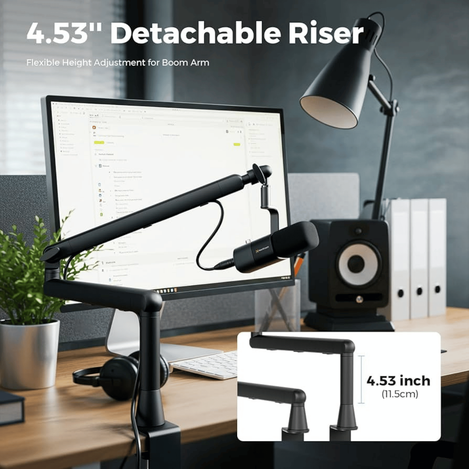 هو **ذراع حامل مايك (Boom Arm)** مصمم لتركيب المايك على المكتب مع إمكانية تحريك الذراع بسهولة لوضع المايك في المكان المثالي أثناء البث، التسجيل، أو الألعاب. 🔎 **الميزات العامة المتوقعة في هذا النوع من الأذرع:** * ذراع **قابل للتعديل** لتغيير ارتفاع وزاوية المايك. * **تركيب بمشبك C‑Clamp** على حافة المكتب لتثبيت قوي وثابت بدون الحاجة لوقوف أرضي. * يدعم أغلب المايكات الشائعة بسبب وجود **مسامير/مقاسات قياسية (عادة 3/8″ أو 5/8″)**، ويمكن تركيبه مع معظم الستاندات والمثبتات. ([Reddit][1]) * يساعد في **توضع المايك بالقرب من الفم** بدون أن يأخذ مساحة من المكتب. * مناسب للبث، الصوت المباشر، البث الحي، والاجتماعات. * غالباً مصنوع من **معدن/ألومنيوم متين** مع مفاصل قابلة للدوران. 📌 **الفائدة الأساسية من Boom Arm مثل GAZ‑NB10 B:** ‑ يجعل وضعية المايك أفضل للصوت لأنك تقدر تقربه وتبعده بدون تحريك جسم الجهاز أو المكتب. ‑ يوفر **تنظيم أسلاك أفضل** ويقلل الاهتزازات مقارنة بوضع المايك مباشرة على المكتب.