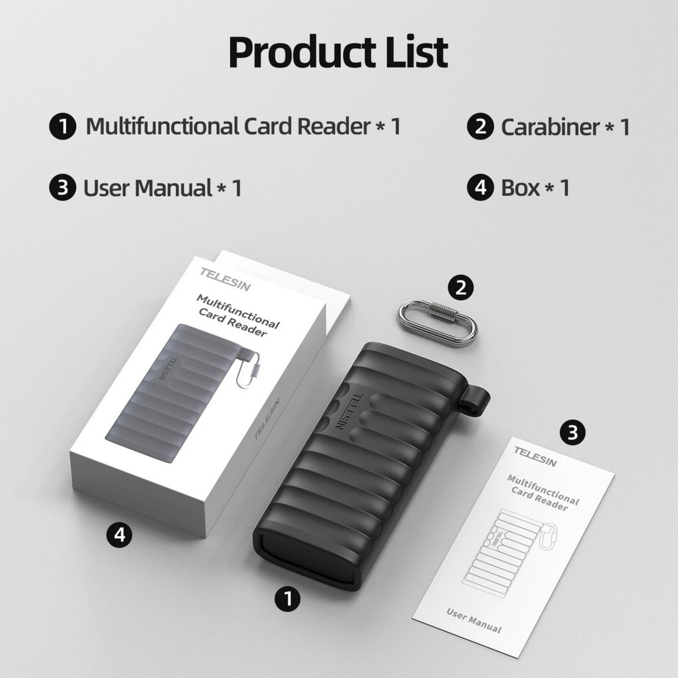 جهاز Micro SD Card Reader Storage Box هو قارئ بطاقات ذاكرة متعدد الاستخدامات يجمع بين قارئ كروت SD وMicro SD وصندوق تخزين للبطاقات في جهاز واحد صغير وسهل الحمل. يتيح نقل البيانات بسرعة عالية عبر منفذ Type-C بين بطاقات الذاكرة والهواتف أو أجهزة الكمبيوتر.  يعد خيارًا عمليًا للمصورين وصناع المحتوى لنقل الصور والفيديو من الكاميرا أو الدرون مباشرة إلى الهاتف أو اللابتوب بسرعة وسهولة