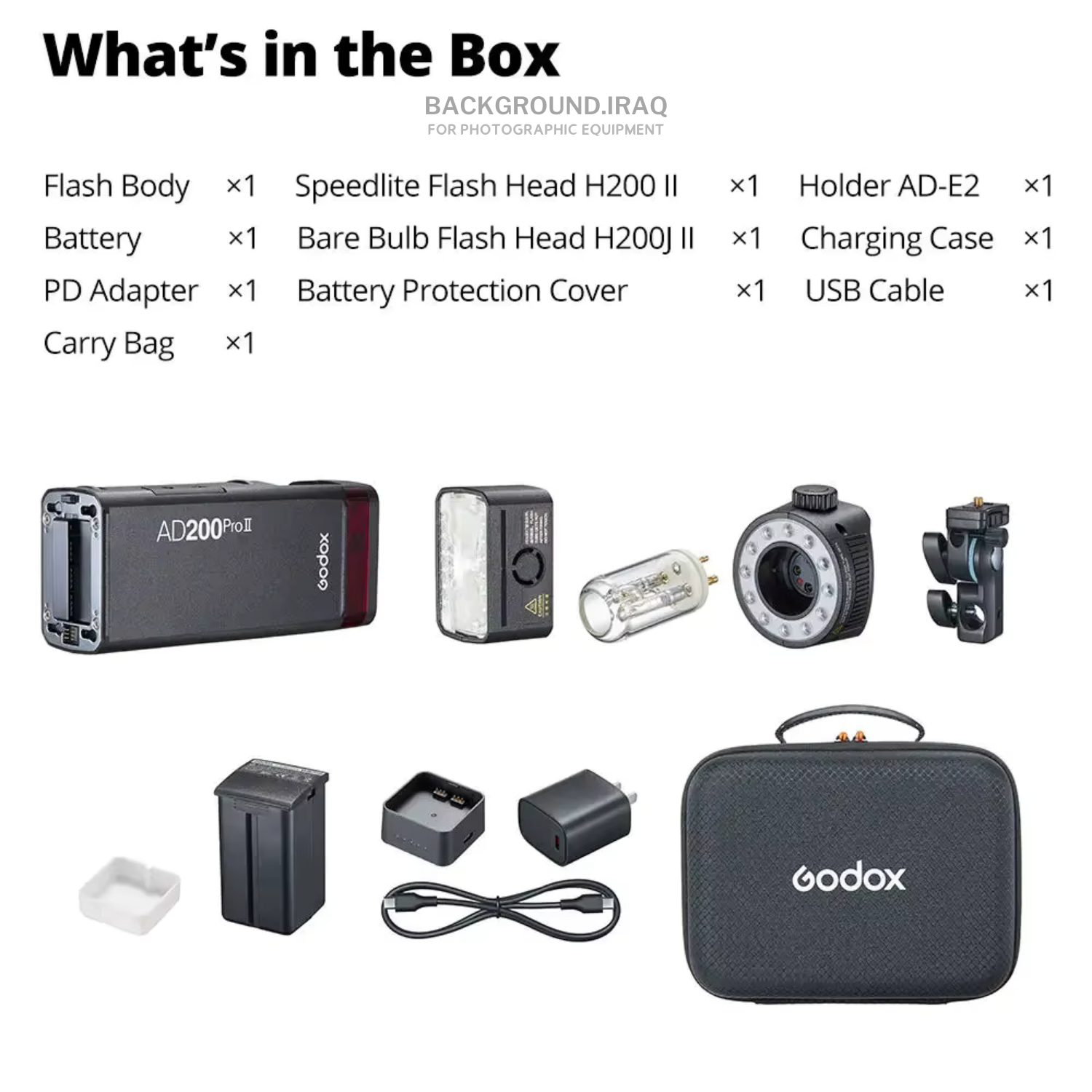 فلاش احترافي محمول من Godox بقدرة 200 واط، يجمع بين قوة فلاش الاستوديو وحجم الفلاش المحمول. إصدار AD200Pro II يأتي بتحسينات في الأداء والثبات، مع دعم كامل لنظام TTL و HSS، مما يجعله خيار مثالي للمصورين المحترفين داخل وخارج الاستوديو. ⸻ المميزات • ⚡ قوة 200Ws حقيقية لإضاءة قوية ومركزة • 🎯 دعم TTL و HSS (حتى 1/8000s) • 🔄 رأسين قابلين للتبديل: • Speedlight Head • Bare Bulb Head • 🎛️ تحكم دقيق بالطاقة (1/256 إلى 1/1) • 📡 نظام تحكم لاسلكي 2.4G مدمج • 🔋 بطارية قوية قابلة للشحن (حتى 500 فلاش) • ⚡ زمن إعادة شحن سريع (≈0.01–1.8 ثانية) ⸻ المواصفات • القدرة: 200Ws • أوضاع العمل: TTL / Manual / Multi • HSS: حتى 1/8000 ثانية • درجة حرارة اللون: ≈5600K ±200K • التحكم اللاسلكي: Godox X System 2.4G • الشاشة: LCD واضحة • البطارية: Li-ion قابلة للشحن ⸻ الاستخدامات • تصوير البورتريه • تصوير المنتجات • تصوير الأعراس والمناسبات • التصوير الخارجي (Outdoor) • تصوير الإعلانات