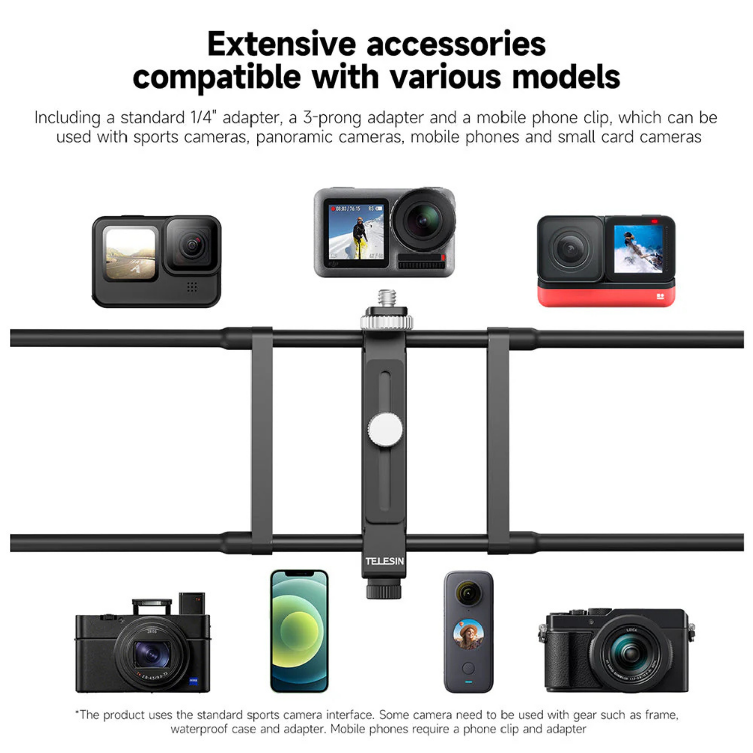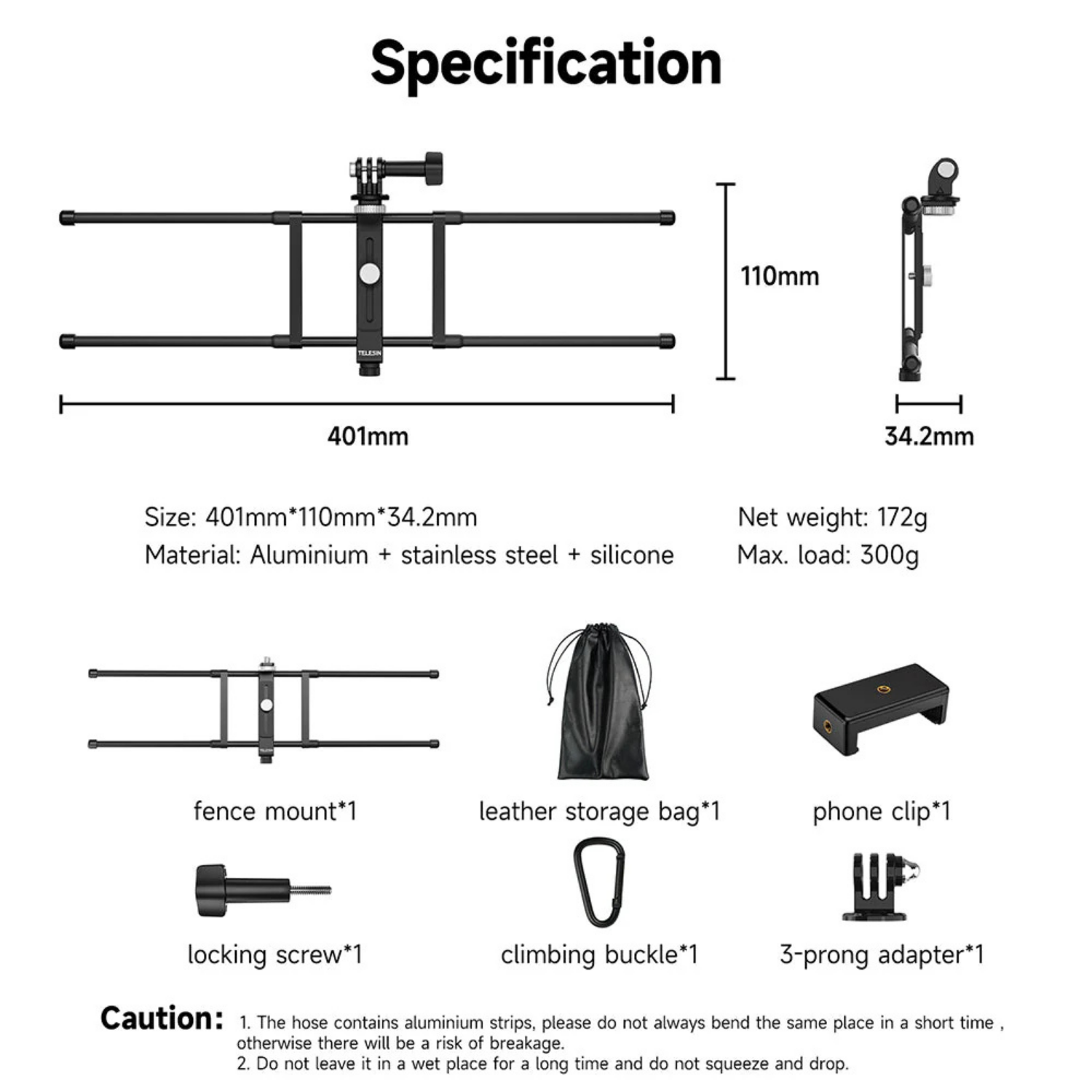 TELESIN Adjustable Universal Fence Mount for Action Cameras/ Phones
