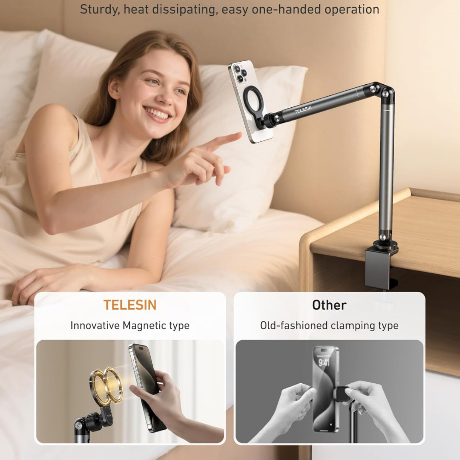 TELESIN Magnetic Phone Holder Clamp for Desk & Bed