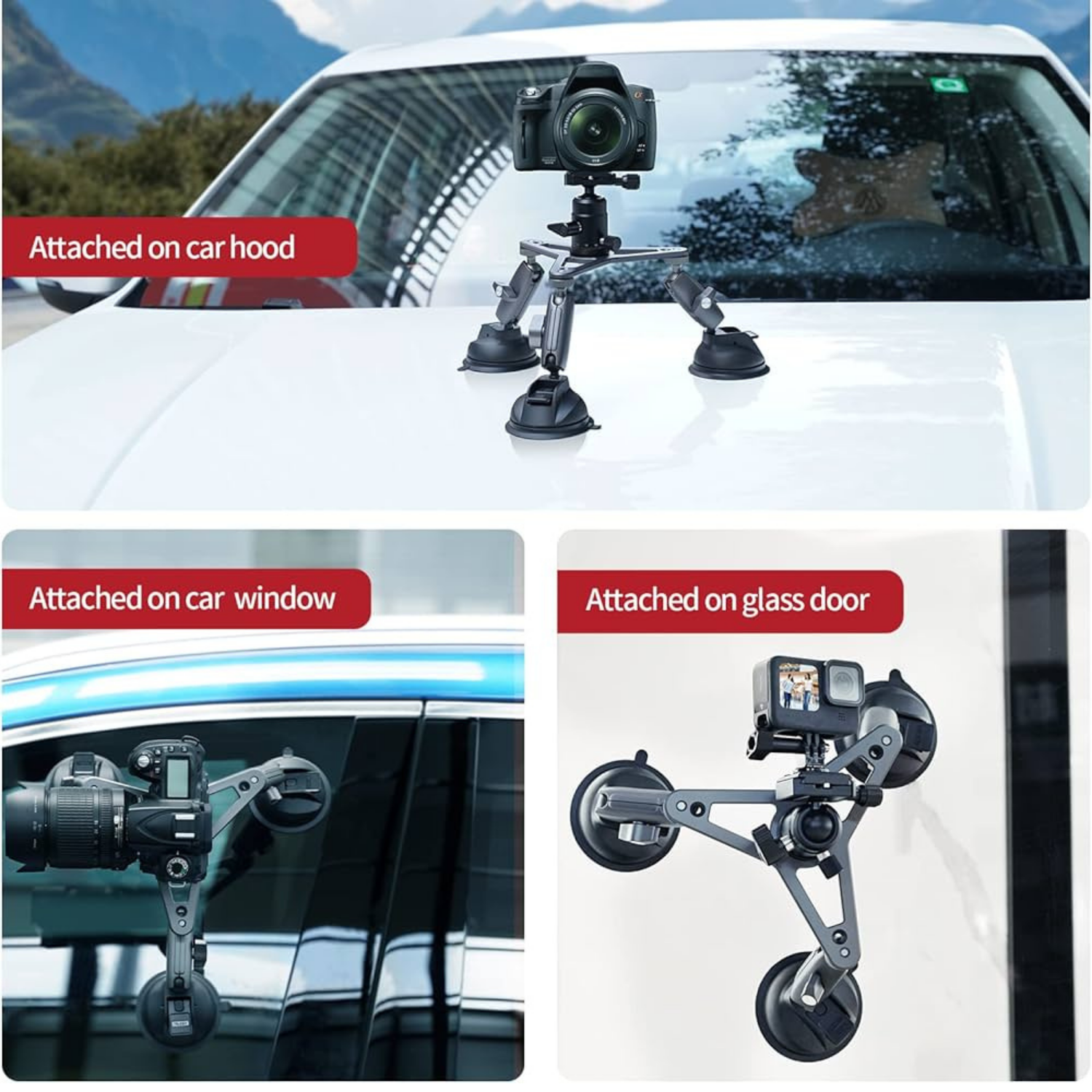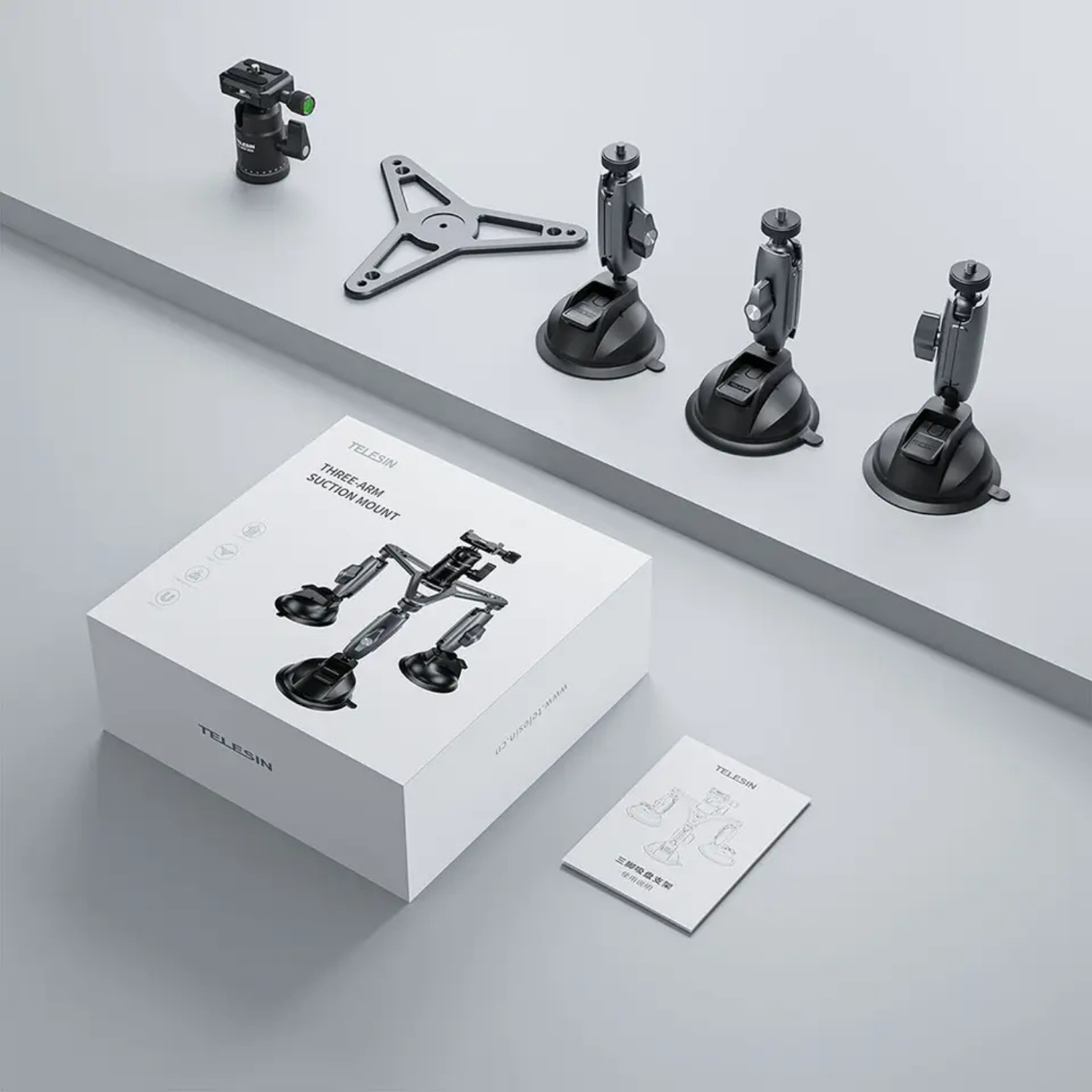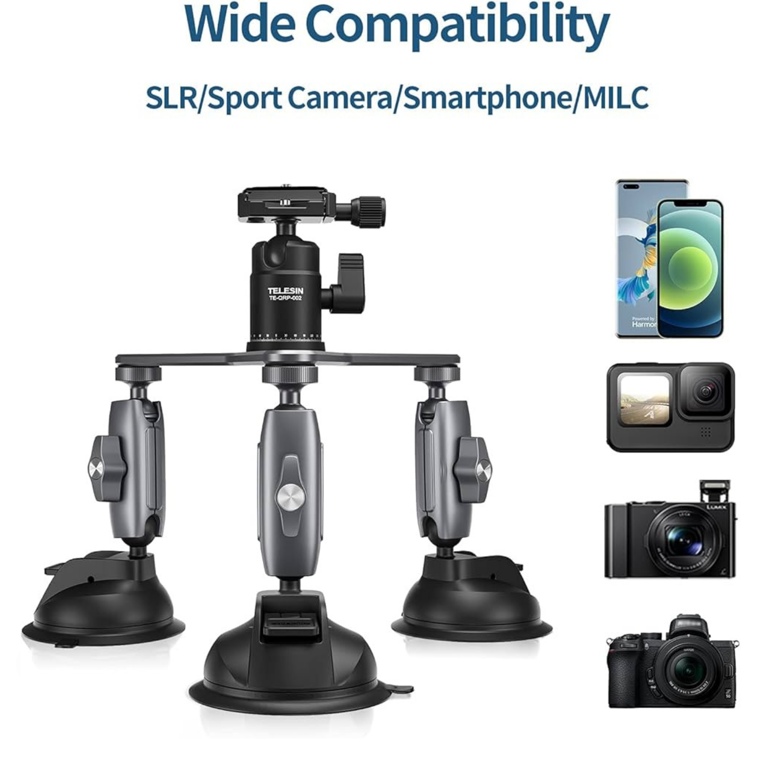 حامل سيارة قوي من TELESIN مزود بـ 3 قواعد شفط (Suction Cups) لتثبيت كاميرات الأكشن مثل GoPro action camera على السيارة بثبات عالي، حتى أثناء السرعات العالية. مثالي لتصوير اللقطات السينمائية أثناء القيادة أو رحلات السفر. ⸻ المميزات • 🚗 3 قواعد شفط قوية لثبات عالي وأمان أكبر • 🔒 تثبيت محكم على الأسطح الملساء (السيارة، الزجاج، المعدن) • 🎥 مثالي لتصوير الحركة (Car Shots) • 🔄 مرونة في التوجيه والزوايا • 🧱 هيكل متين مقاوم للاهتزاز • ⚙️ متوافق مع GoPro وكاميرات الأكشن الأخرى ⸻ الاستخدامات • تصوير السيارات (Car Cinematic Shots) • تصوير الرحلات والسفر • تصوير الأكشن والسرعة • صناعة المحتوى الاحترافي