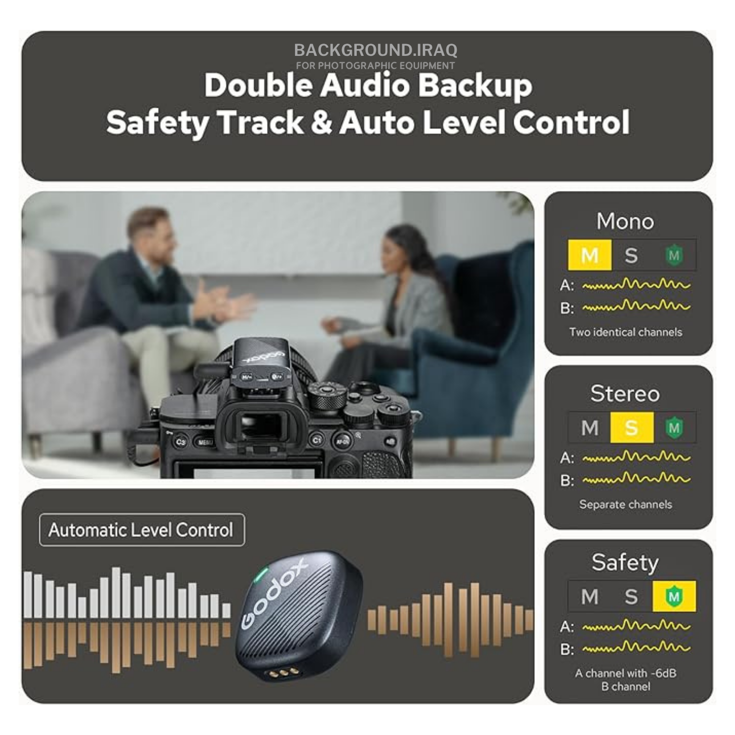 هو نظام مايك لاسلكي احترافي مخصص لصناع المحتوى، يوفّر تسجيل صوت عالي الجودة لشخصين في نفس الوقت مع توافق واسع مع الكاميرات والموبايل. يأتي مع 2 مايك (Transmitter) و2 مستقبل (Receiver) ليعطيك مرونة كاملة للتصوير الاحترافي داخل وخارج الاستوديو. 🔧 أبرز المواصفات النظام: مايك لاسلكي بتقنية 2.4GHz Digital عدد المايكات: 2 Transmitters مدمجة مع مايك داخلي عدد المستقبلات: مستقبل كاميرا (3.5mm) مستقبل موبايل (USB-C / Lightning) جودة الصوت: تسجيل 48kHz / 24-bit احترافي مدى الإرسال: يصل إلى 300 متر تقريبًا (984 قدم) نمط الالتقاط: Omnidirectional (يلتقط الصوت من كل الاتجاهات) التحكم: Noise Reduction (تقليل الضوضاء) Safety Track (-6dB Backup) البطارية: حتى 10 ساعات تشغيل مع علبة الشحن تصل إلى 40 ساعة 🎛️ المميزات الأساسية تسجيل صوت شخصين بنفس الوقت (مقابلات / بودكاست) تصميم صغير وخفيف يثبت بسهولة على الملابس دعم كاميرات + موبايل + لابتوب جودة صوت احترافية مناسبة للفيديو مدى طويل وثبات في الإشارة علبة شحن لزيادة وقت الاستخدام