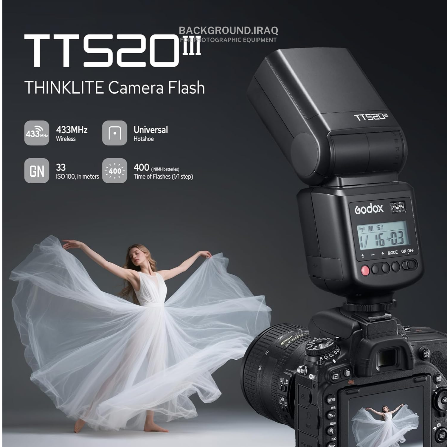 فلاش الكاميرا TT520III هو فلاش خارجي قوي وعملي مصمم لتحسين الإضاءة في التصوير الفوتوغرافي، سواء كنت تصور بورتريه أو أحداث أو تصوير داخلي. يوفر أداءً ممتازًا مع تحكم يدوي كامل وسهولة في الاستخدام، وهو خيار ممتاز للمبتدئين والمحترفين على حد سواء. 🔧 أبرز المواصفات نوع الفلاش: Speedlite يدوي (Manual) دليل رقم (Guide Number): GN52 (ISO 100، متر) — قدرة إضاءة جيدة للمسافات المتوسطة إلى البعيدة زاوية تشتت الضوء: 24 – 105 مم (مع توسع تلقائي) سرعة إعادة الشحن: سريعة نسبياً للبطاريات القياسية بطاريات التشغيل: 4 × بطاريات AA (غير مرفقة) شدة الإضاءة: قابل للتعديل يدويًا عبر أزرار التحكم دعم Tilt: إمالة الرأس لأعلى ولأسفل لتوجيه الفلاش دعم Rotation: تدوير الرأس لمزيد من تحكم الإضاءة مقبس فلاش: Hot Shoe متوافق مع اغلب الكاميرات المرتبطة بموونت Hot Shoe مزلاج أمان: لتثبيت الفلاش بقوة على الكاميرا تصميم: خفيف ومتين مناسب للتصوير اليومي 📷 استخدامات الفلاش تصوير البورتريه والإضاءة الناعمة تصوير الأحداث والحياة اليومية إضاءة الخلفية والتحكم في الظلال ملء الإضاءة عند التصوير في الإضاءة المنخفضة 🎯 لماذا جيد؟ Simple & Practical — مناسب للمبتدئين والمحترفين. Guide Number 52 — قوة إضاءة جيدة مقابل السعر. Manual Control — تحكم كامل بالسطوع. موثوقية عالية مع تصميم عملي.